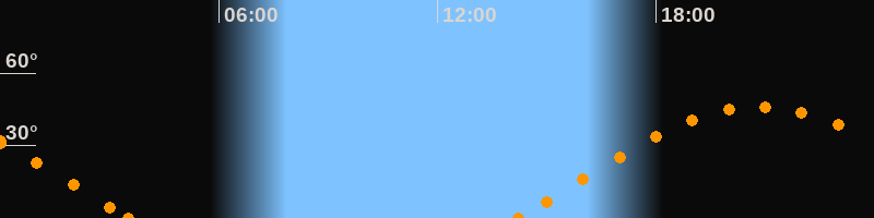 Höchster Stand (Kulmination)20:51 Uhr (h = 46.2°)