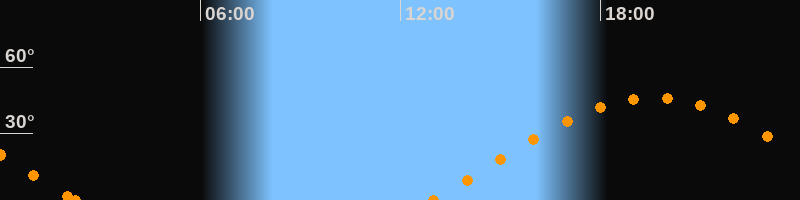 Höchster Stand (Kulmination)19:35 Uhr (h = 46.1°)