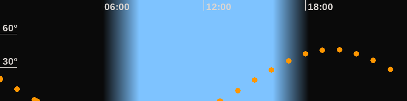 Höchster Stand (Kulmination)19:31 Uhr (h = 46.1°)
