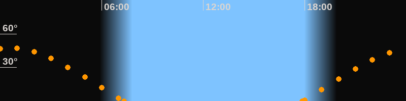 Höchster Stand (Kulmination)00:33 Uhr (h = 47.3°)