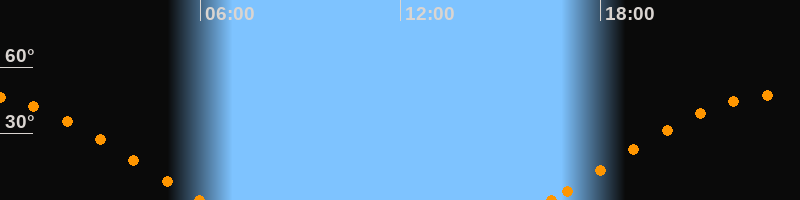 Höchster Stand (Kulmination)23:13 Uhr (h = 47.2°)
