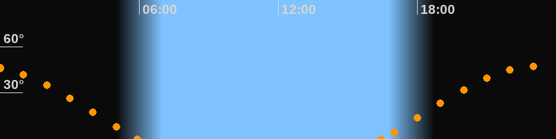 Höchster Stand (Kulmination)23:09 Uhr (h = 47.2°)