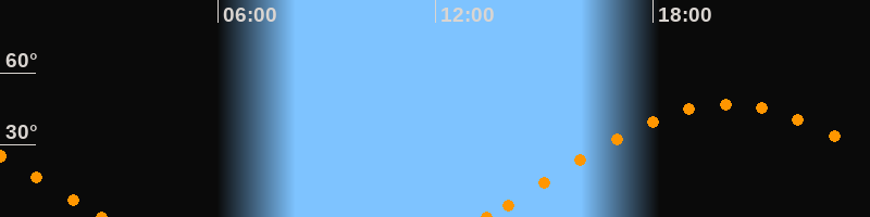 Höchster Stand (Kulmination)20:04 Uhr (h = 46.9°)