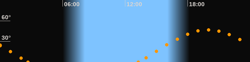 Höchster Stand (Kulmination)19:56 Uhr (h = 46.9°)