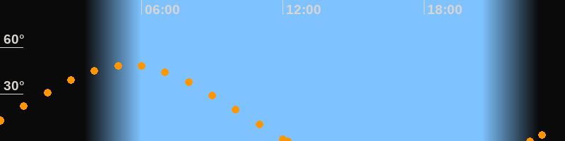 Höchster Stand (Kulmination)05:23 Uhr (h = 48.7°)