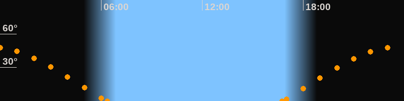 Höchster Stand (Kulmination)23:30 Uhr (h = 48.1°)