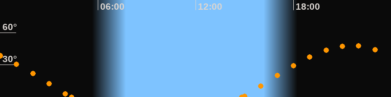 Höchster Stand (Kulmination)21:34 Uhr (h = 47.8°)