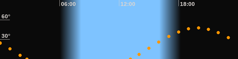 Höchster Stand (Kulmination)19:54 Uhr (h = 47.7°)