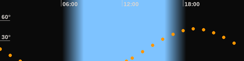Höchster Stand (Kulmination)19:10 Uhr (h = 47.7°)