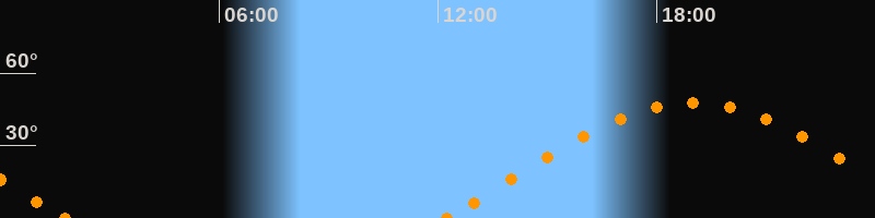 Höchster Stand (Kulmination)18:58 Uhr (h = 47.7°)