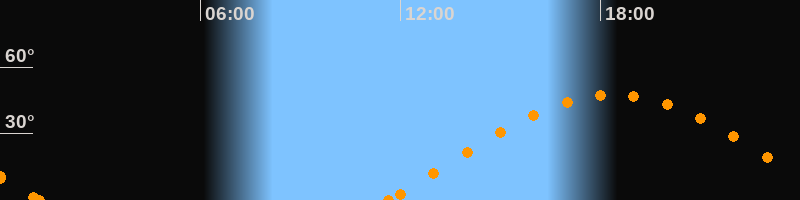 Höchster Stand (Kulmination)18:23 Uhr (h = 47.7°)