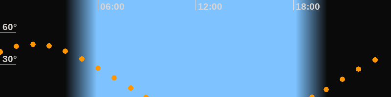 Höchster Stand (Kulmination)02:05 Uhr (h = 49.2°)
