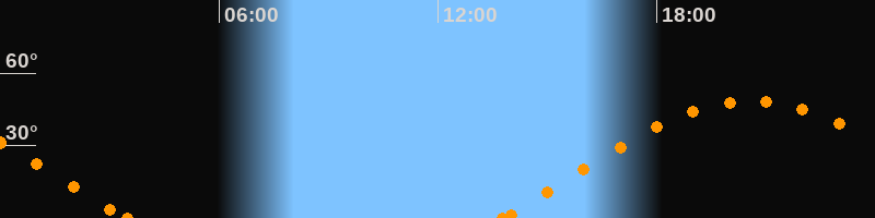 Höchster Stand (Kulmination)20:35 Uhr (h = 48.5°)
