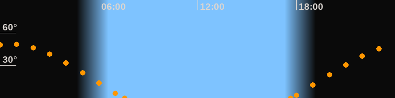 Höchster Stand (Kulmination)00:34 Uhr (h = 49.8°)