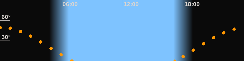 Höchster Stand (Kulmination)00:06 Uhr (h = 49.7°)