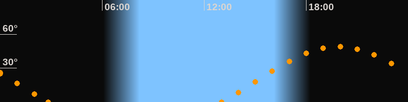 Höchster Stand (Kulmination)19:53 Uhr (h = 49.3°)