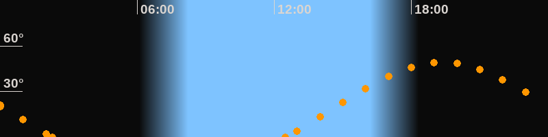 Höchster Stand (Kulmination)19:21 Uhr (h = 49.2°)