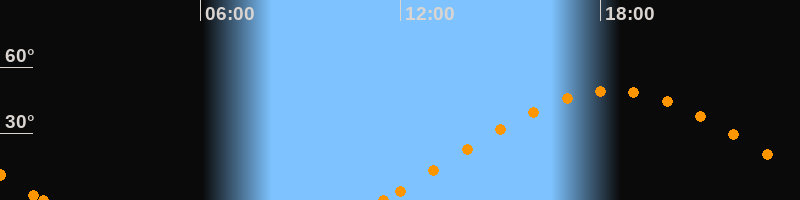 Höchster Stand (Kulmination)18:22 Uhr (h = 49.3°)