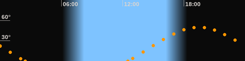 Höchster Stand (Kulmination)19:27 Uhr (h = 50°)