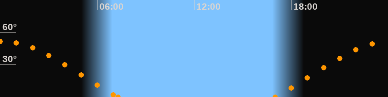 Höchster Stand (Kulmination)00:07 Uhr (h = 51.9°)