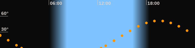 Höchster Stand (Kulmination)19:30 Uhr (h = 51.5°)