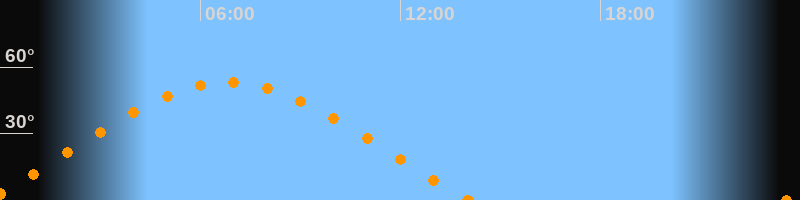 Aufgang23:34 Uhr im Nordosten (αAz = 67.2°)