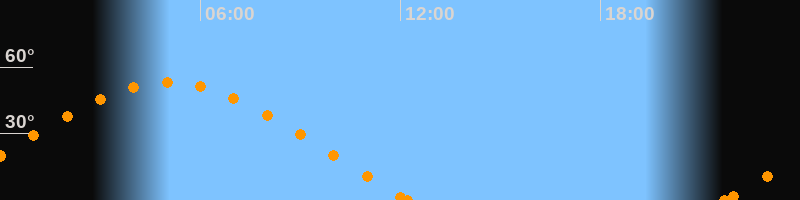 Höchster Stand (Kulmination)05:01 Uhr (h = 53.1°)