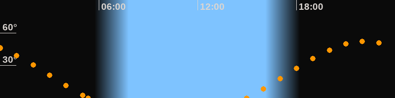 Höchster Stand (Kulmination)22:08 Uhr (h = 52.4°)