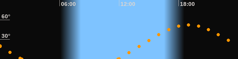 Höchster Stand (Kulmination)19:00 Uhr (h = 52.2°)