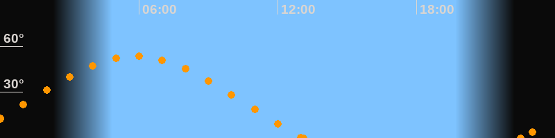 Höchster Stand (Kulmination)05:50 Uhr (h = 53.7°)
