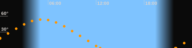 Höchster Stand (Kulmination)05:15 Uhr (h = 53.7°)