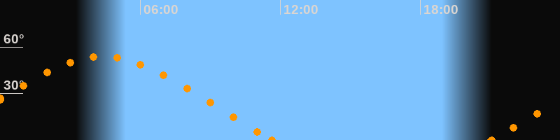 Höchster Stand (Kulmination)04:23 Uhr (h = 53.7°)