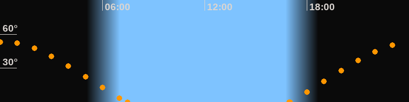 Höchster Stand (Kulmination)00:11 Uhr (h = 53.3°)