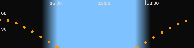 Höchster Stand (Kulmination)00:03 Uhr (h = 53.3°)