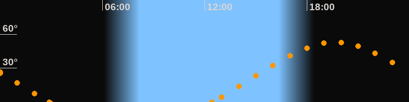 Höchster Stand (Kulmination)19:38 Uhr (h = 52.9°)