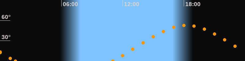Höchster Stand (Kulmination)18:15 Uhr (h = 52.9°)