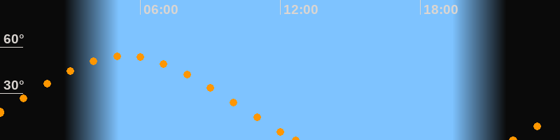 Höchster Stand (Kulmination)05:20 Uhr (h = 54.4°)
