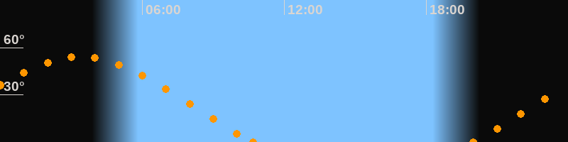 Höchster Stand (Kulmination)03:22 Uhr (h = 54.3°)