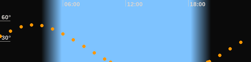Höchster Stand (Kulmination)03:14 Uhr (h = 54.3°)
