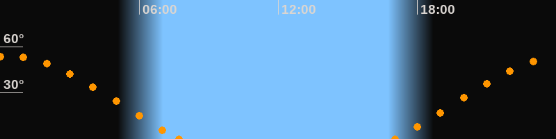 Höchster Stand (Kulmination)00:21 Uhr (h = 54°)