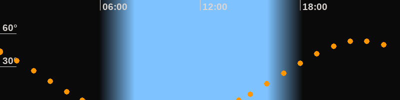 Höchster Stand (Kulmination)21:35 Uhr (h = 53.7°)