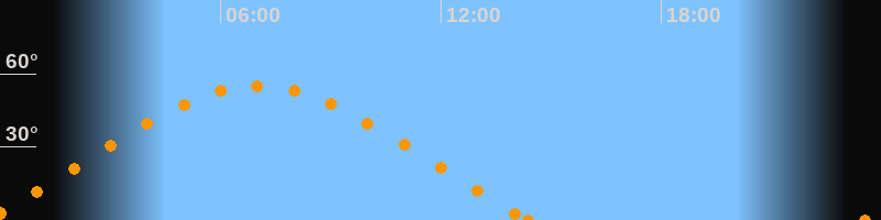Höchster Stand (Kulmination)07:00 Uhr (h = 55°)
