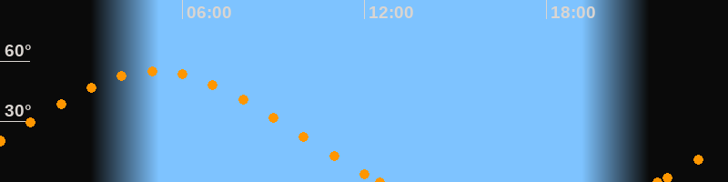 Höchster Stand (Kulmination)05:07 Uhr (h = 55°)