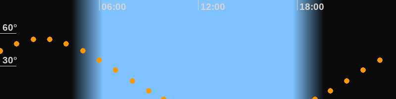 Aufgang19:05 Uhr im Nordosten (αAz = 64.2°)