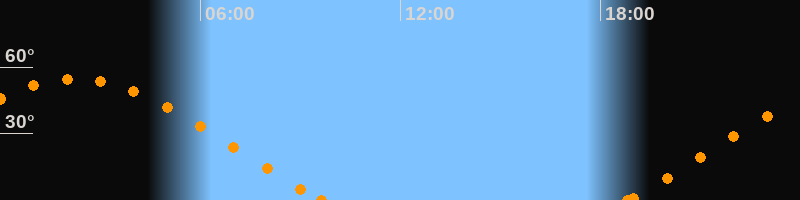 Aufgang18:49 Uhr im Nordosten (αAz = 64.2°)