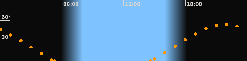 Höchster Stand (Kulmination)21:53 Uhr (h = 54.3°)