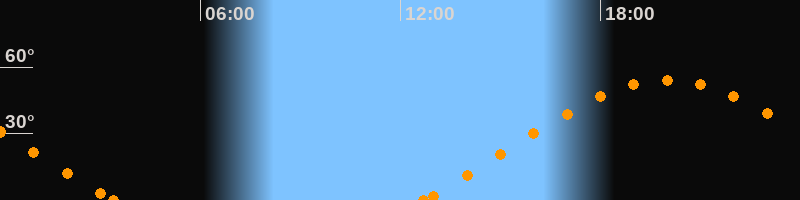 Höchster Stand (Kulmination)20:01 Uhr (h = 54.2°)