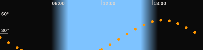 Höchster Stand (Kulmination)19:10 Uhr (h = 54.2°)