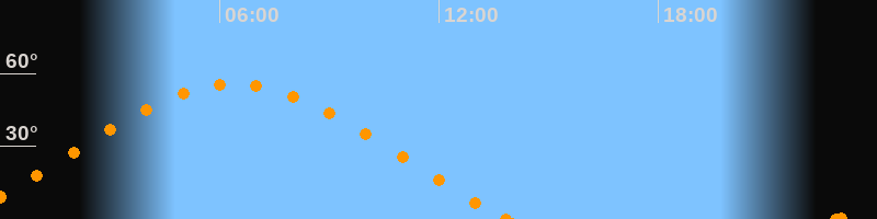 Höchster Stand (Kulmination)06:23 Uhr (h = 55.6°)