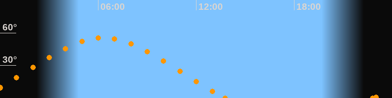 Höchster Stand (Kulmination)06:19 Uhr (h = 55.6°)